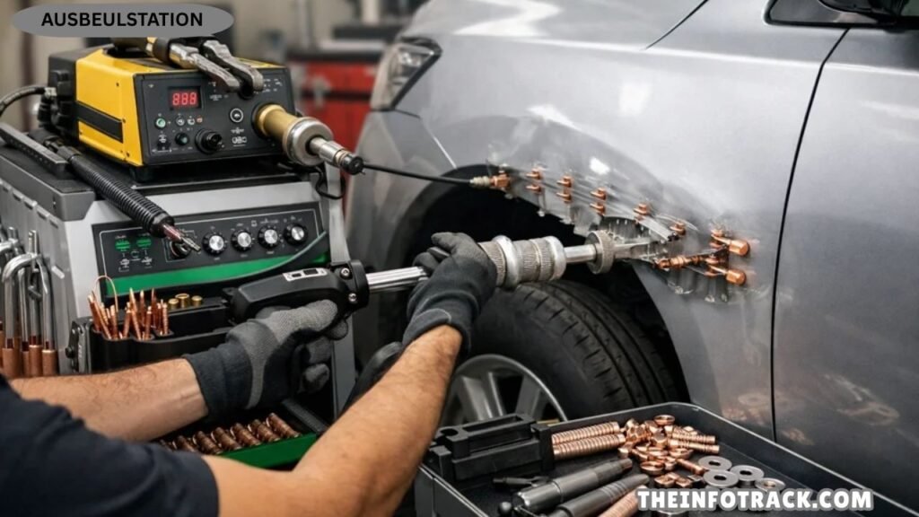 In real-world use, an ausbeulstation is a professional auto service center equipped with tools and trained technicians who restore damaged car panels without heavy repairs.